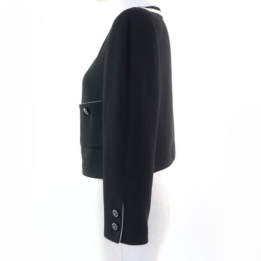 CHANEL 22C P71865v63363 100% Silk Rhinestone Coco Mark Button Collarless Jacket