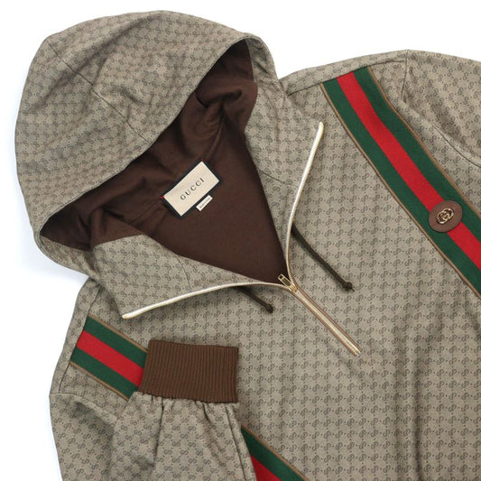 Gucci 655153 Mini GG Jersey Sherry Line Interlocking G Half Zip Hoodie Beige M