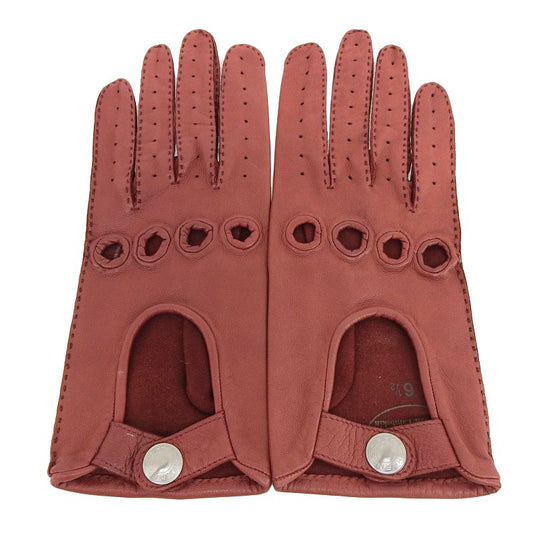 Hermes Lamb Leather Serie Button Perforated Driving Gloves Bordeaux 6.5 Made
