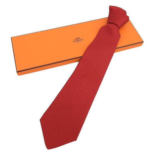 Hermes 038189t 100% Silk Rouge Clavat Fassone H Motif Tie With Box Made In