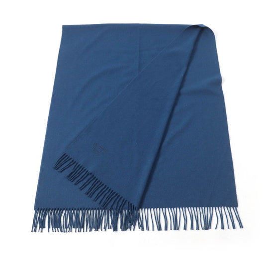 Hermes 100% Cashmere Logo Embroidered Fringed Large Scarf Shawl Scarf Blue Women