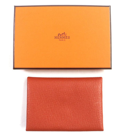 Hermes Calvi Duo Brick Silver Hardware Chevre Mizor Leather Coin Case W