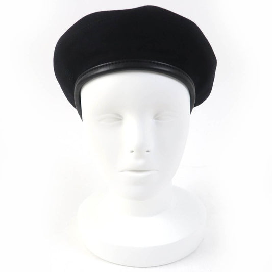 Hermes 100% Cashmere Lamb Leather Use H Lift Embroidered Beret Hat Black 58 Hat