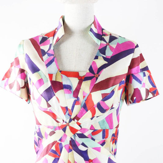 CHANEL P53088 16C 100% Silk Coco Mark Pattern Short Sleeve Dress Pink Blue Red