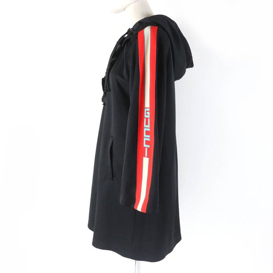 Gucci 502280 Armline Logo Design Half Zip Hooded Jersey Dress Black XS Made In