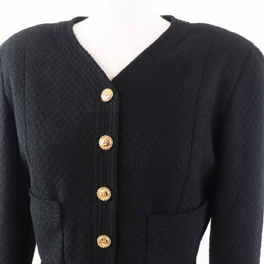 CHANEL Vintage Wool 100% Silk Lining No Collar With Coco Mark Gold Buttons