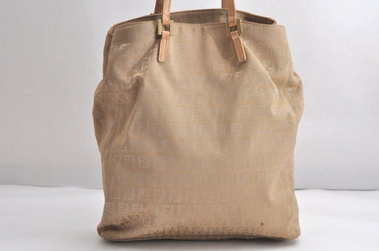 Fendi Vintage Zucchino Pattern Hand Tote Bag Canvas Leather Beige 4350n