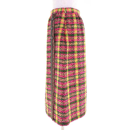 Gucci 596980 Partially 100% Silk Lion Buttons All-over Wool Tweed Long Skirt