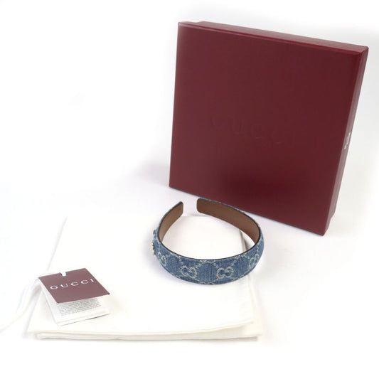 Gucci 836228 Leather Usage GG Denim Horsebit Headband Hair Accessory Indigo