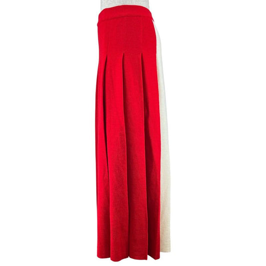 Gucci 23SS 727146 100% Wool Long Length Pleated Skirt Red S Made In Italy