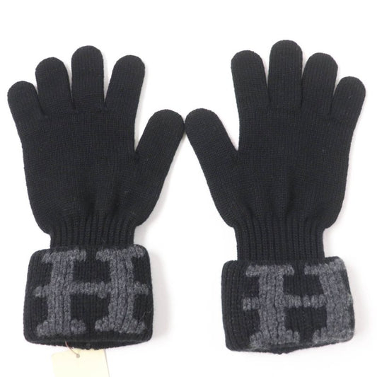 Hermes 100% Cashmere Margiela Period H Logo Knit Gloves Black SM Made In Italy