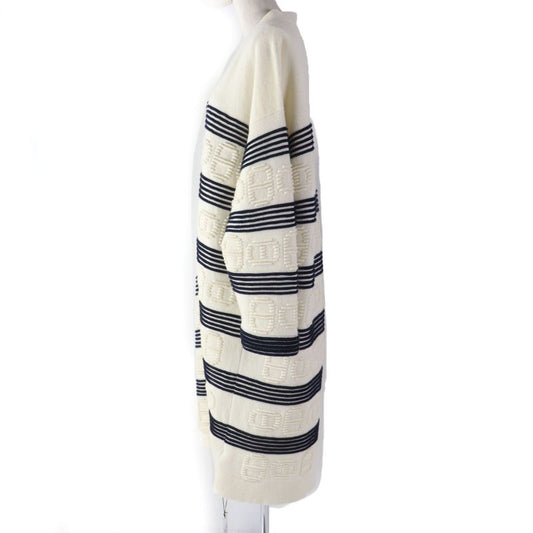 Hermes 2023 100% Wool With Serie Buttons H-pattern Knitting V-neck Oversilhouett