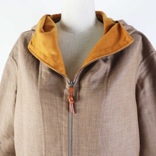 Hermes 2023 3e0105dc Cashmere Wool W Face Hooded Zip Up Long Coat Brown