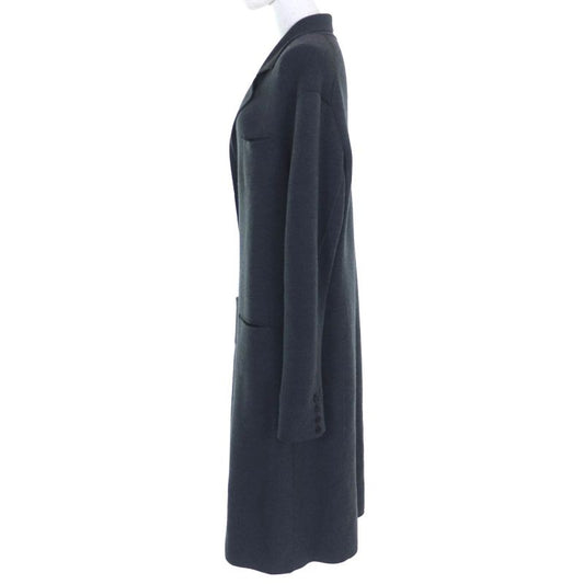 Hermes 2192003 Wool Serie Buttoned Deerskin Wool Long Knitted Coat Charcoal