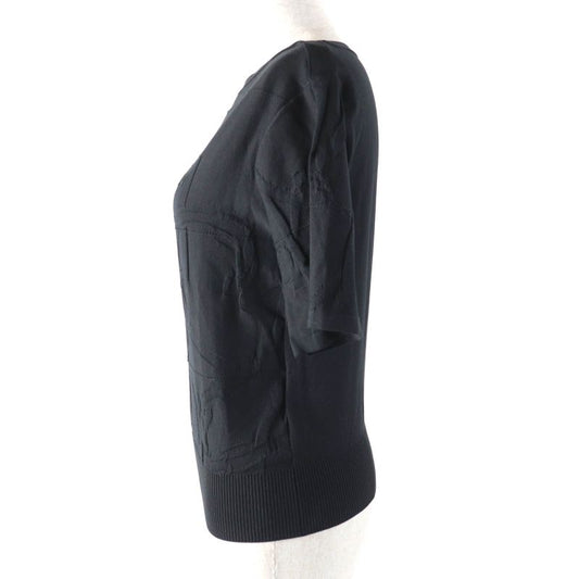 Hermes 21AW Wool Cashmere Blend H Lift Short Sleeve Knit Top Black 40 Made In