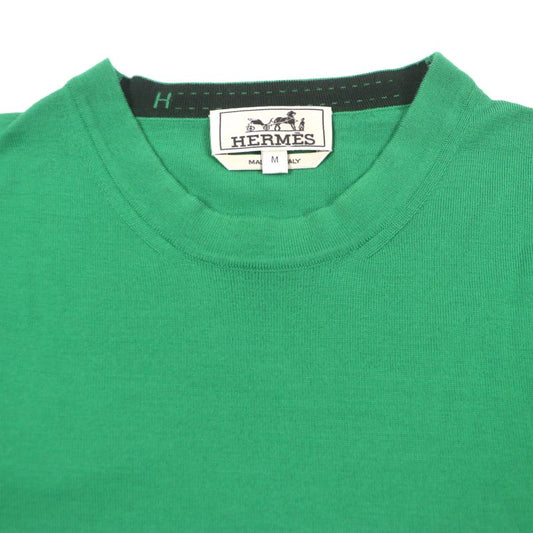 Hermes 22AW 100% Wool H Embroidery Crew Neck High Gauge Knit Sweater Green M
