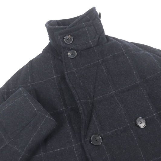 Hermes 23AW Cashmere Blend Windowpane Padded Double Breasted Coat Patted Coat