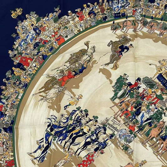 Hermes Carre 90 Cirque Molier Molie Circus Scarf 100% Silk Navy