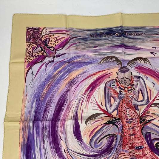 Hermes Carre 90 Les Perles De Turukana Pearls Heavenly Fire Scarf Silk Multicolo