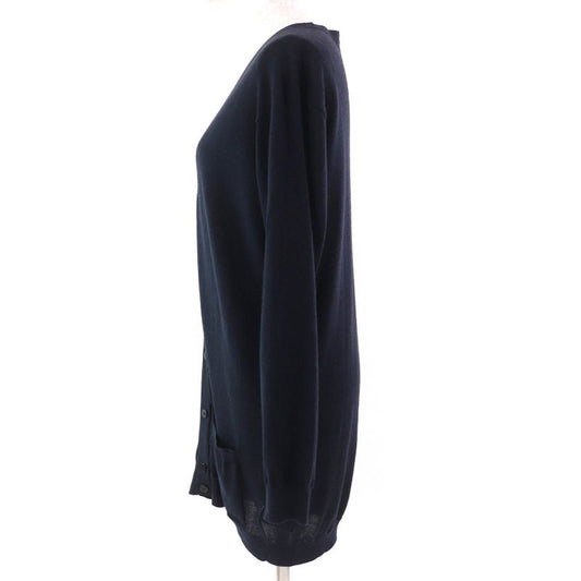 Hermes Cashmere Silk Long Sleeve Knit Cardigan With H Button Dark Navy 36 Made