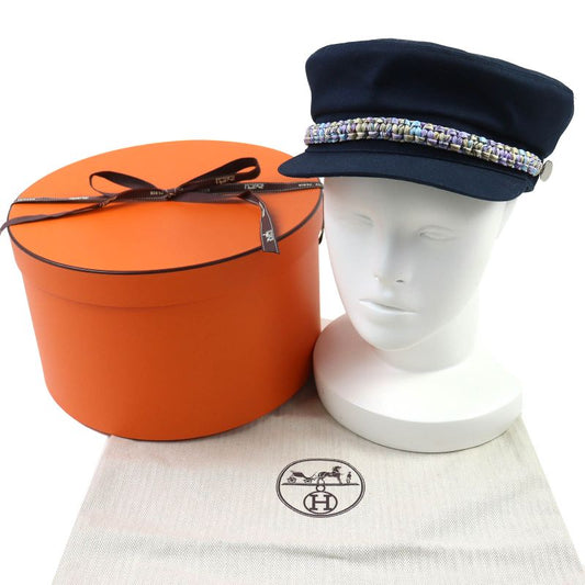 Hermes Deauville SILK Deauville 100% Cotton Serie Button Casket Hat Navy 57
