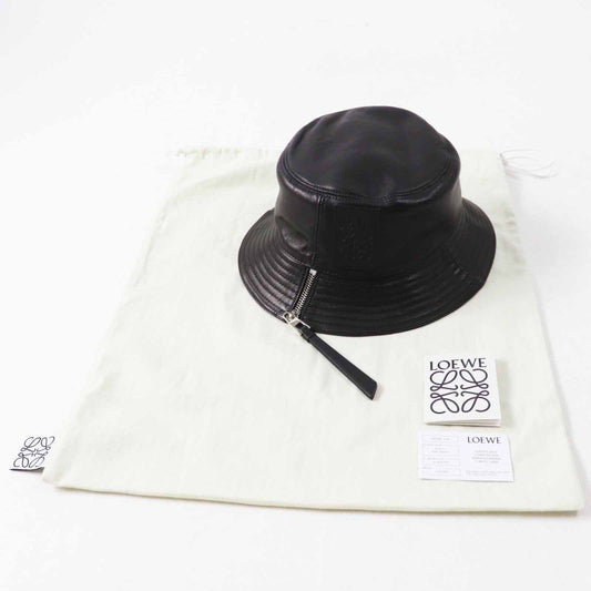 LOEWE Anagram Leather Lamb Leather Hat With Patches Hat Black Silver Hardware
