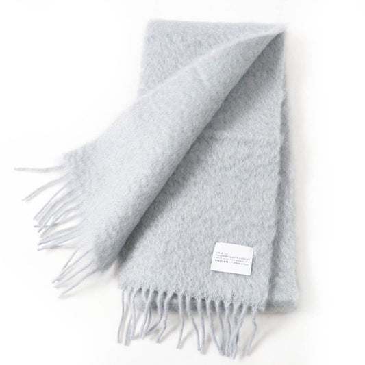 LOEWE Mohair Wool Anagram Leather Patch Fringed Scarf Gray Made In Spain