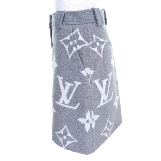 Louis Vuitton 21AW Wool Silk Giant Monogram Logo Gold Button Mini Skirt Gray 36