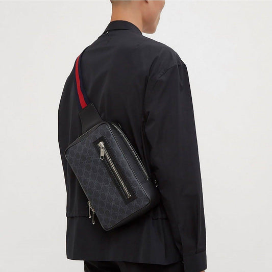 Gucci GG Supreme Sling Backpack Waist Crossbody Bag Black Leather Men's
