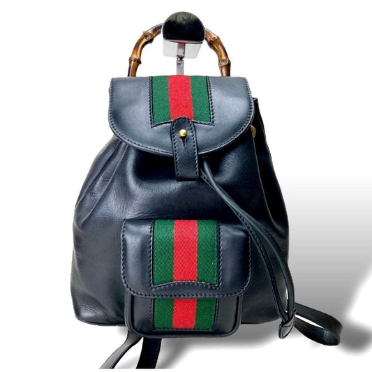 Gucci GG Vintage Bamboo Monogram Sherry Web Ophidia Backpack Leather