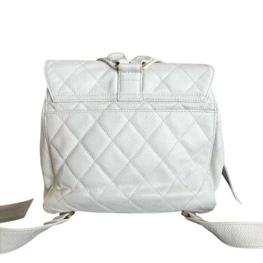 CHANEL 24K Vintage Caviar Quilted Classic Backpack White Ivory Purse
