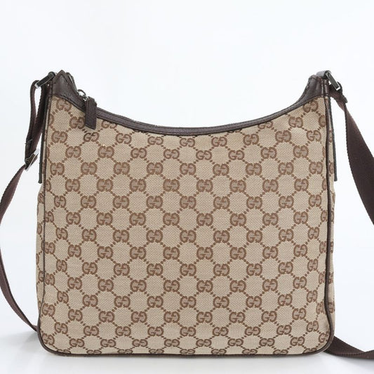 Gucci GG Canvas 122791 Leather Shoulder Bag Crossbody Messenger Commuter Brown