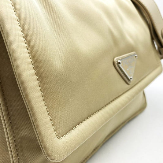 Prada Small Padded Re-nylon Crossbody Shoulder Bag Beige Nylon Leather Triangle