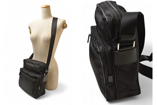 Prada Tessuto Nylon Triangle Logo Leather Shoulder Bag Crossbody Messenger Men