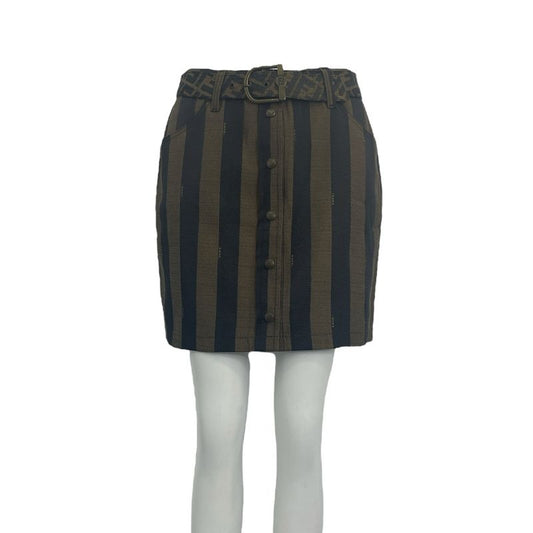 Fendi Skirt Zucca Pattern Logo With Belt Brown Size XL