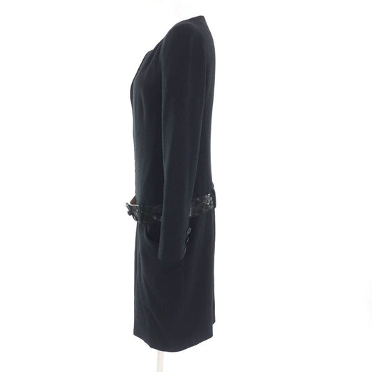 Louis Vuitton Wool Leather Dress Long Sleeves Knit Sweater Belt Box Black And