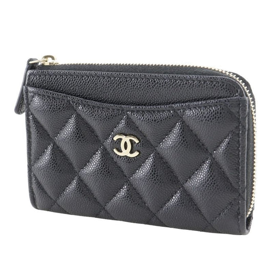 Chanel Matelasse L-shape Zipper Fragment Case Caviar Skin Black Ladies Coin Case