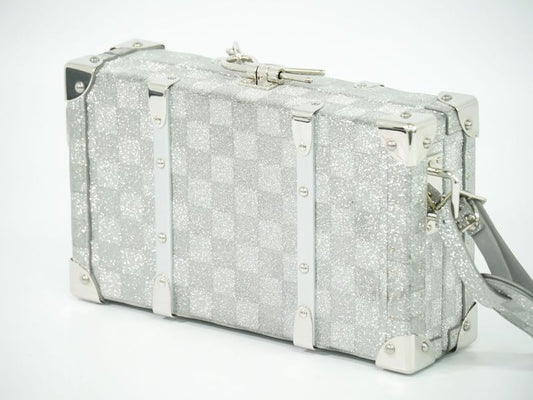 Authentic Louis Vuitton LV Damier Glitter Wallet Trunk Silver Viton Wallet Used