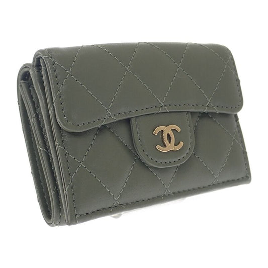 Chanel Small Flap Wallet Ap0230-y04059-nzg82 Trifold Wallet Lambskin Khaki Gold