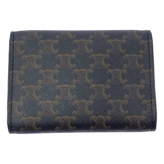 Celine - Leather Triomphe Leopard Compact Wallet - Dark Brown - Women's