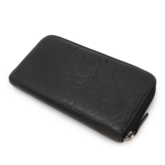Chanel Camellia Coco Mark Zip Wallet Round Zipper Long Wallet Lambskin Leather