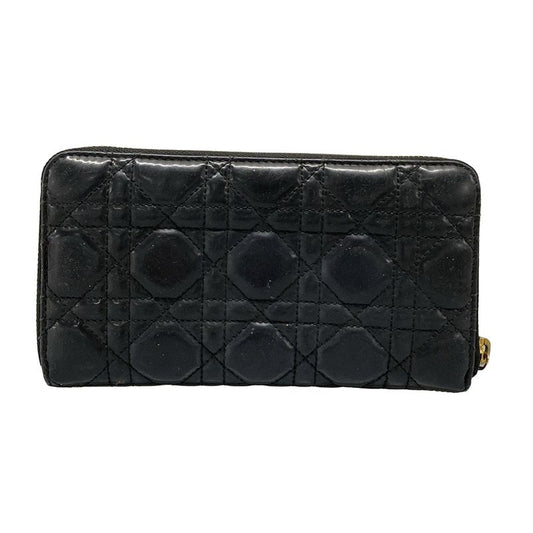 DIOR Christian Dior Long Wallet Canage Stitch Black Round Zipper Leather