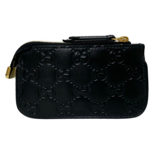 Gucci Coin Case Striped Line 447964 Black Leather