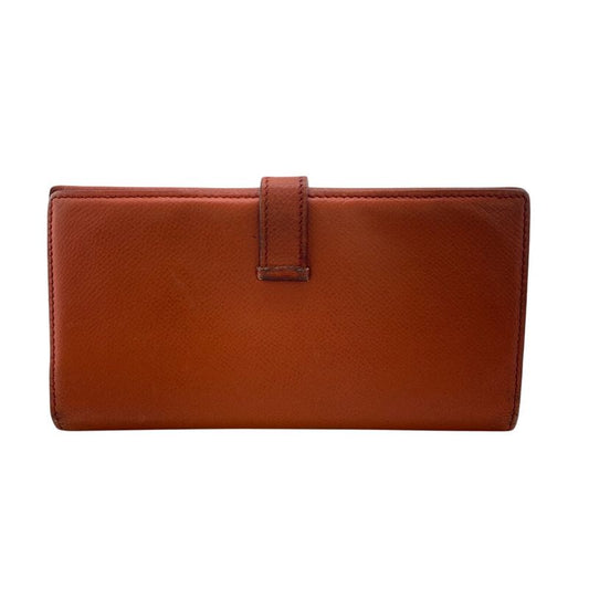 Hermes Bearn Fold Long Wallet Branded Card Holder Coin Purse Orange Ladies