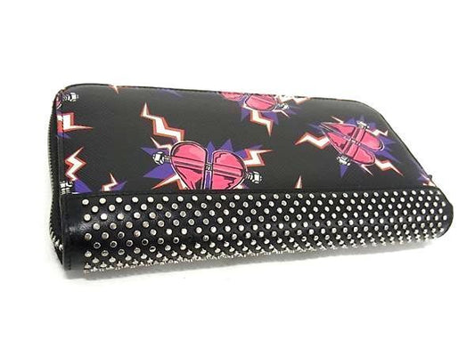 Prada Frankenhart Saffiano Leather Studded Round Zipper Long Wallet