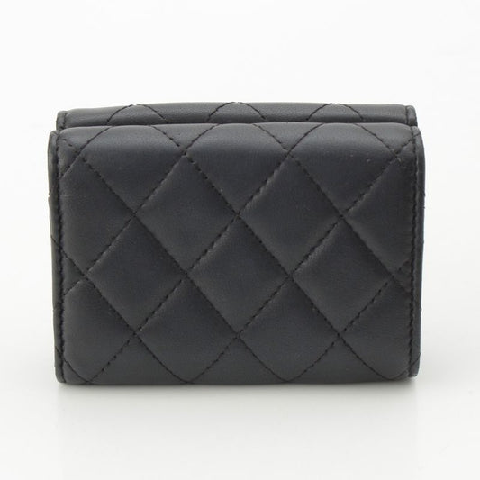 Chanel Lambskin Matelasse Compact Wallet Trifold Black