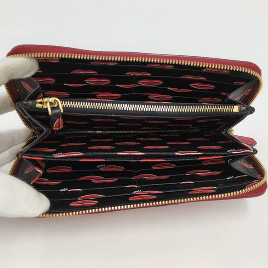 Prada Round Zipper Long Wallet Saffiano Leather Red 1ml506