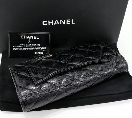 Chanel Zipper Long Wallet With Coin Purse Matelasse Classic Flap Wallet Caviar