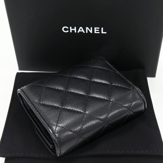 Chanel Trifold Wallet With Coin Purse Classic Small Wallet Caviar Skin Black