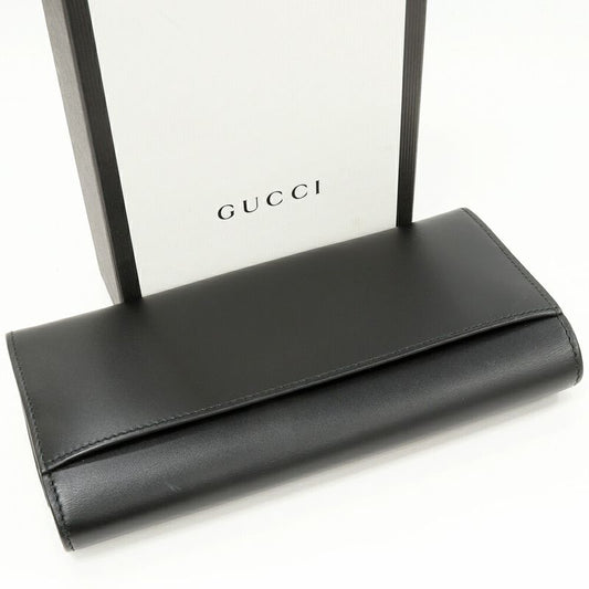Gucci Round Zipper Long Wallet With Coin Purse Soho Interlocking G Calf Black